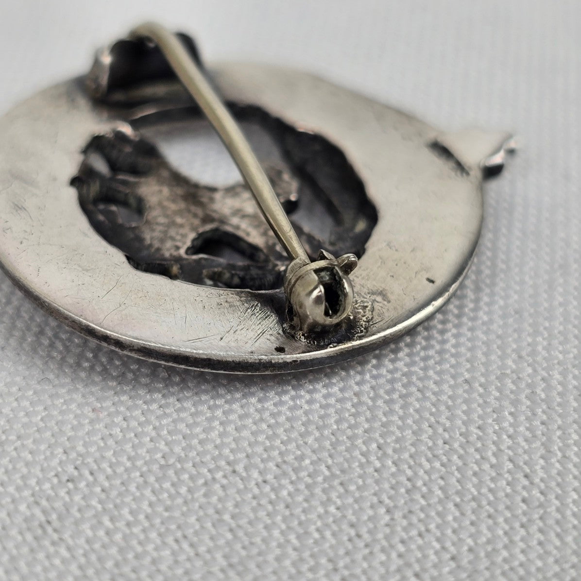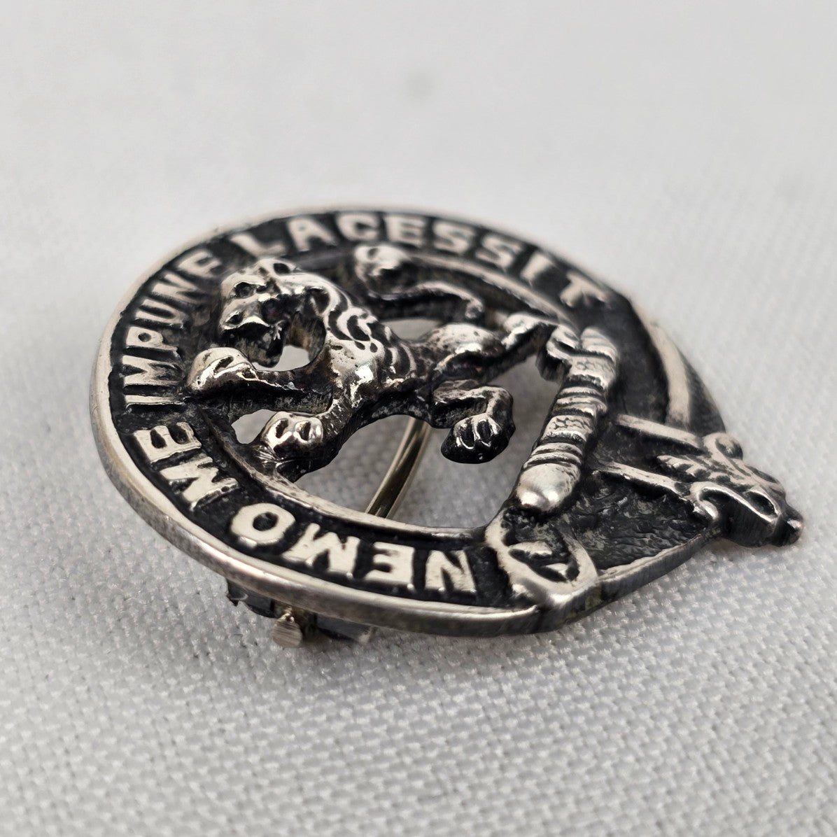 Vintage Sterling Silver Scottish Clan Badge Brooch Nemo Me Impune Lacesset