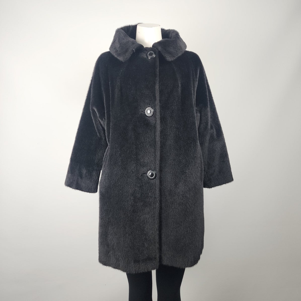 Vintage Union Label Black Faux Fur Pea Coat Size L