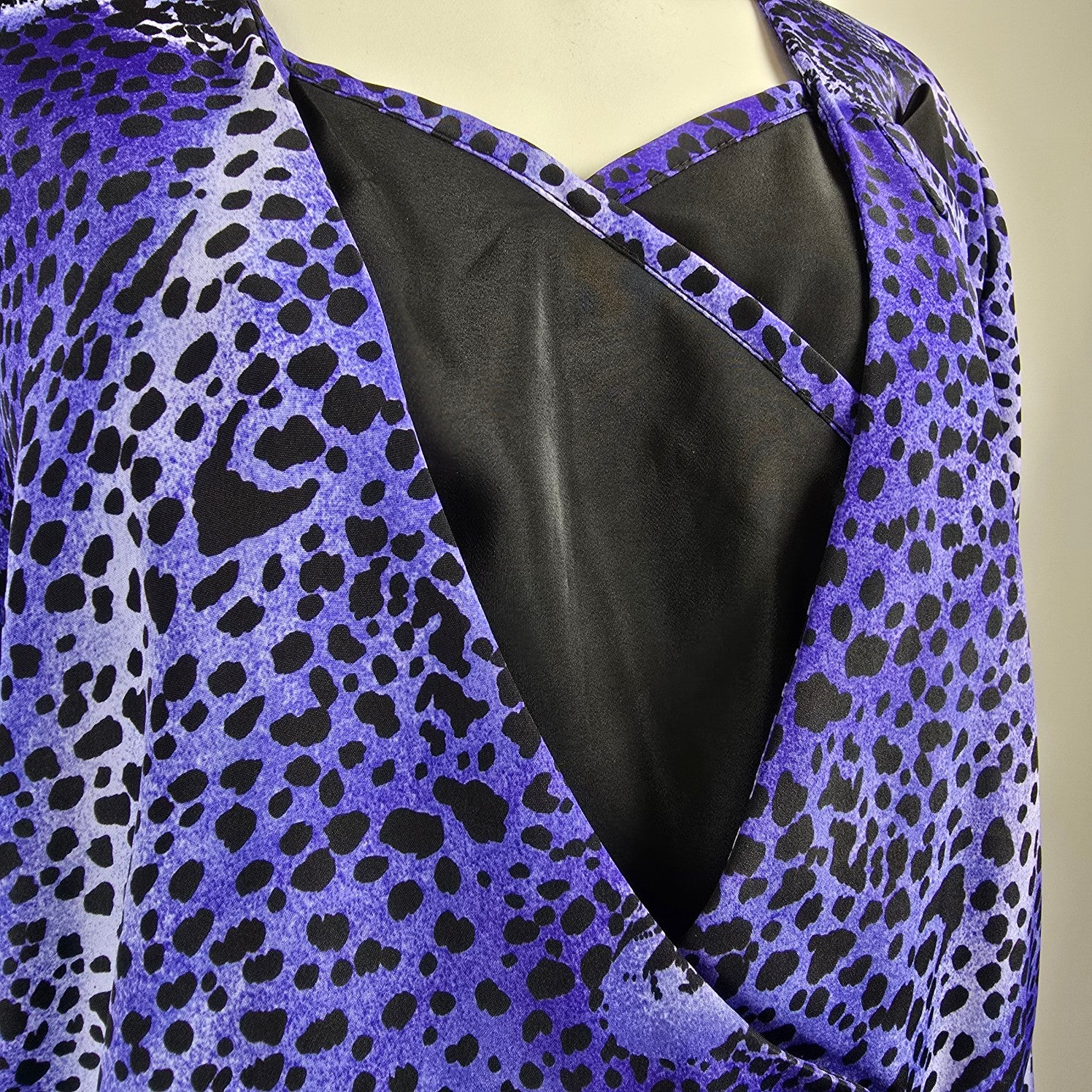 Vintage Warsi Blue Leopard Print Top Blouse Size 9/10