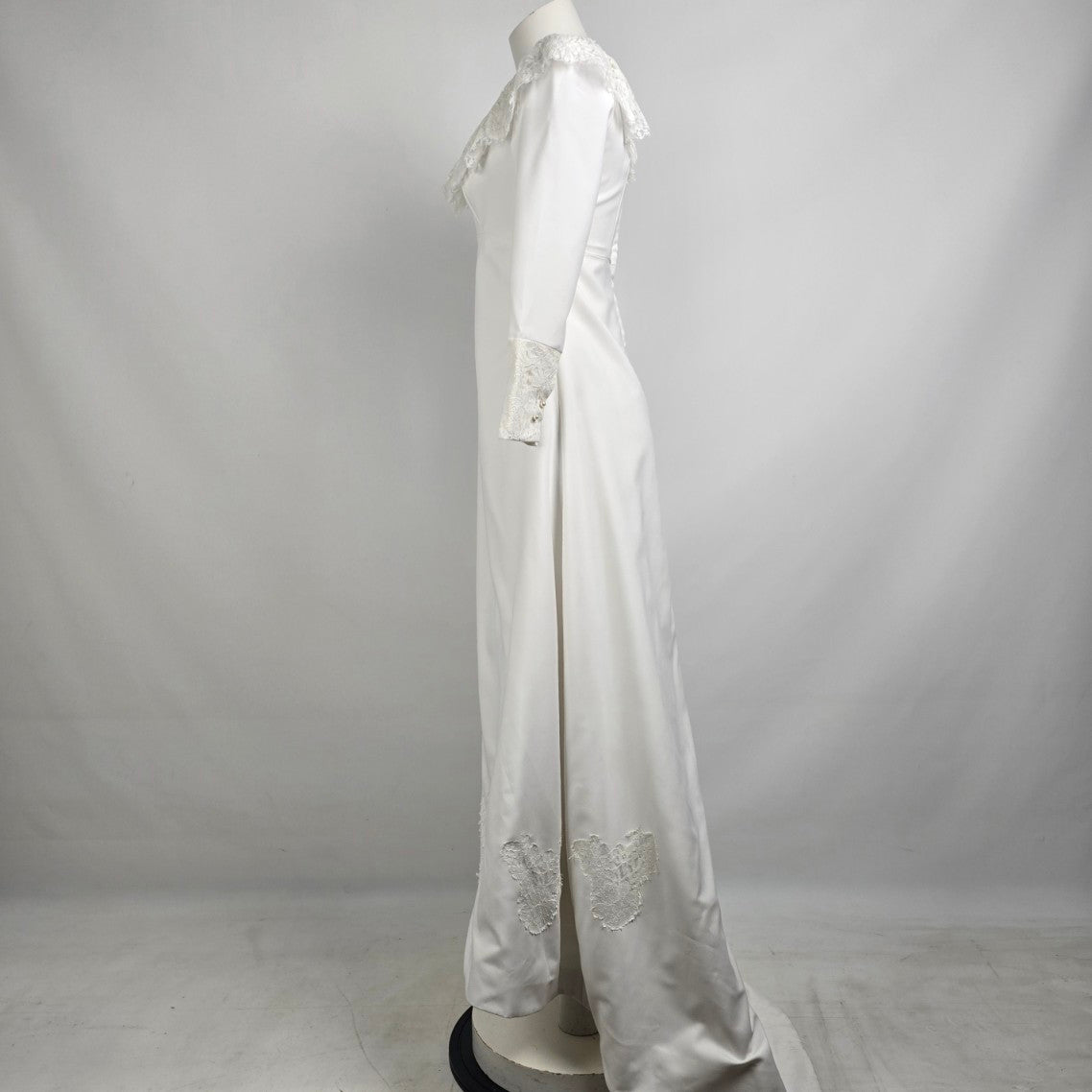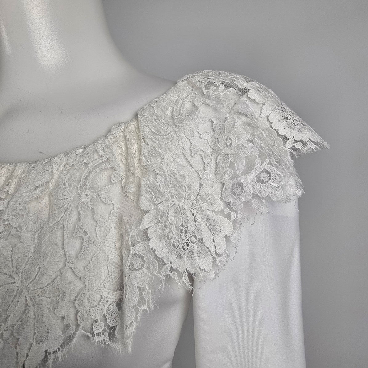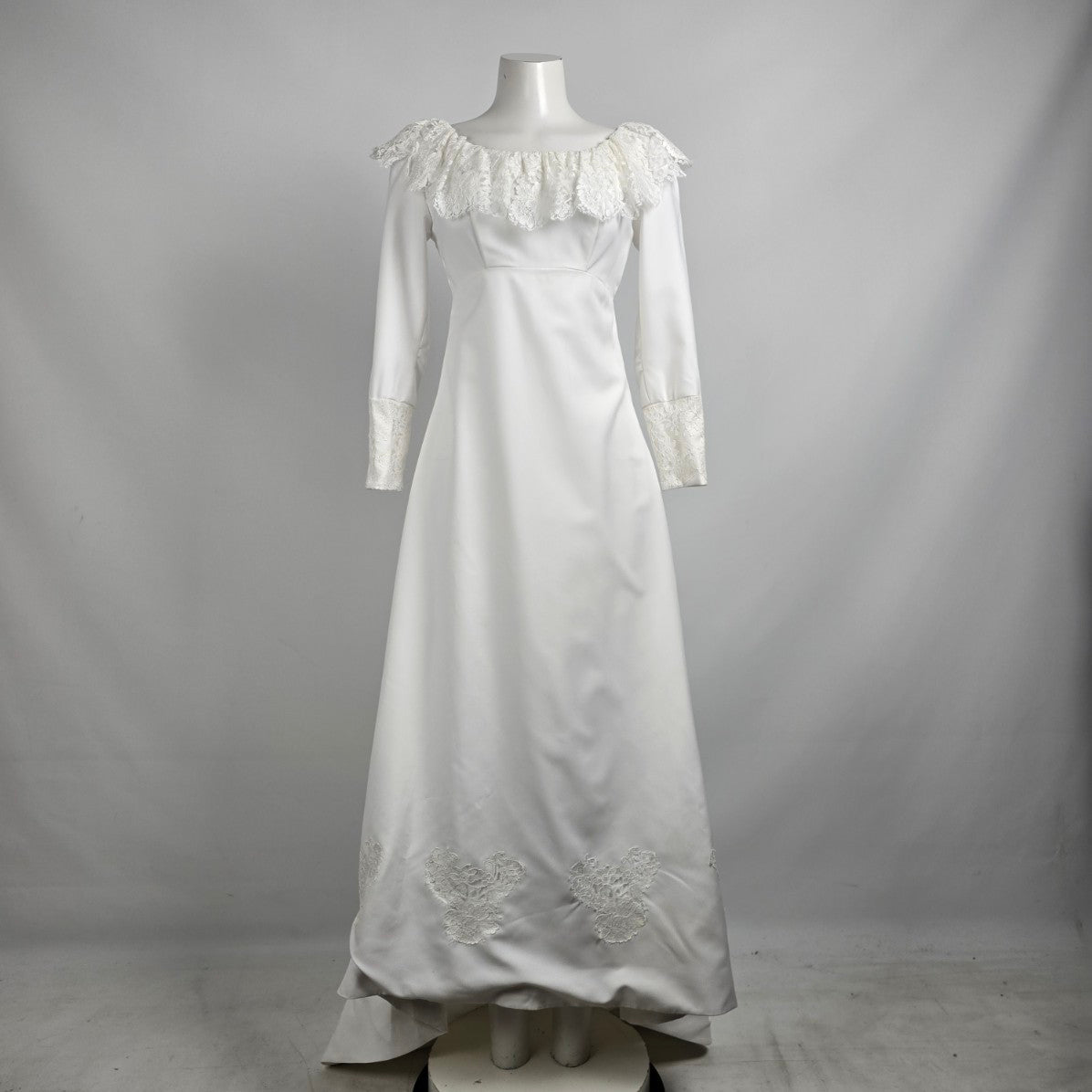 Vintage White Lace Detail Long Sleeve Wedding Dress Size XS/S