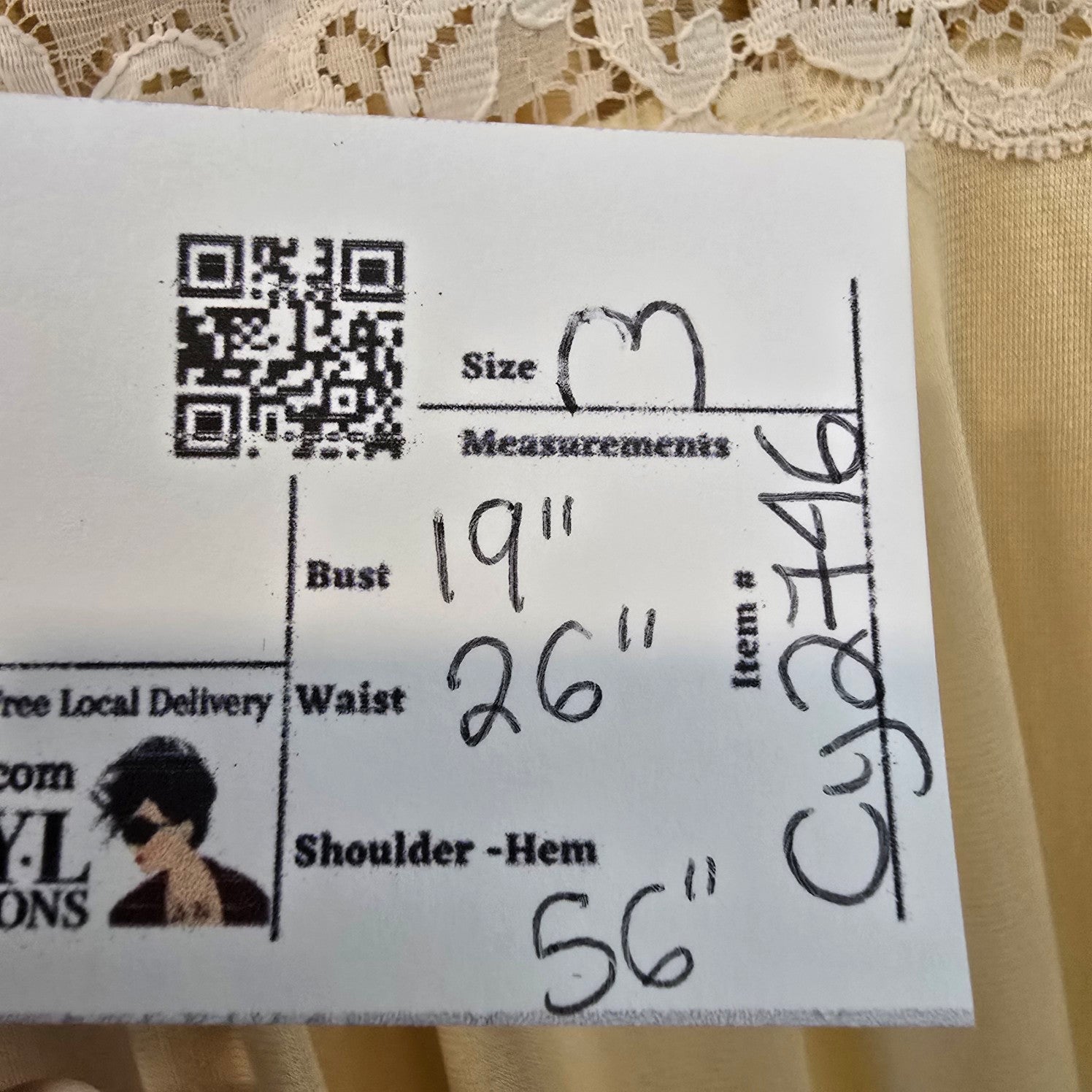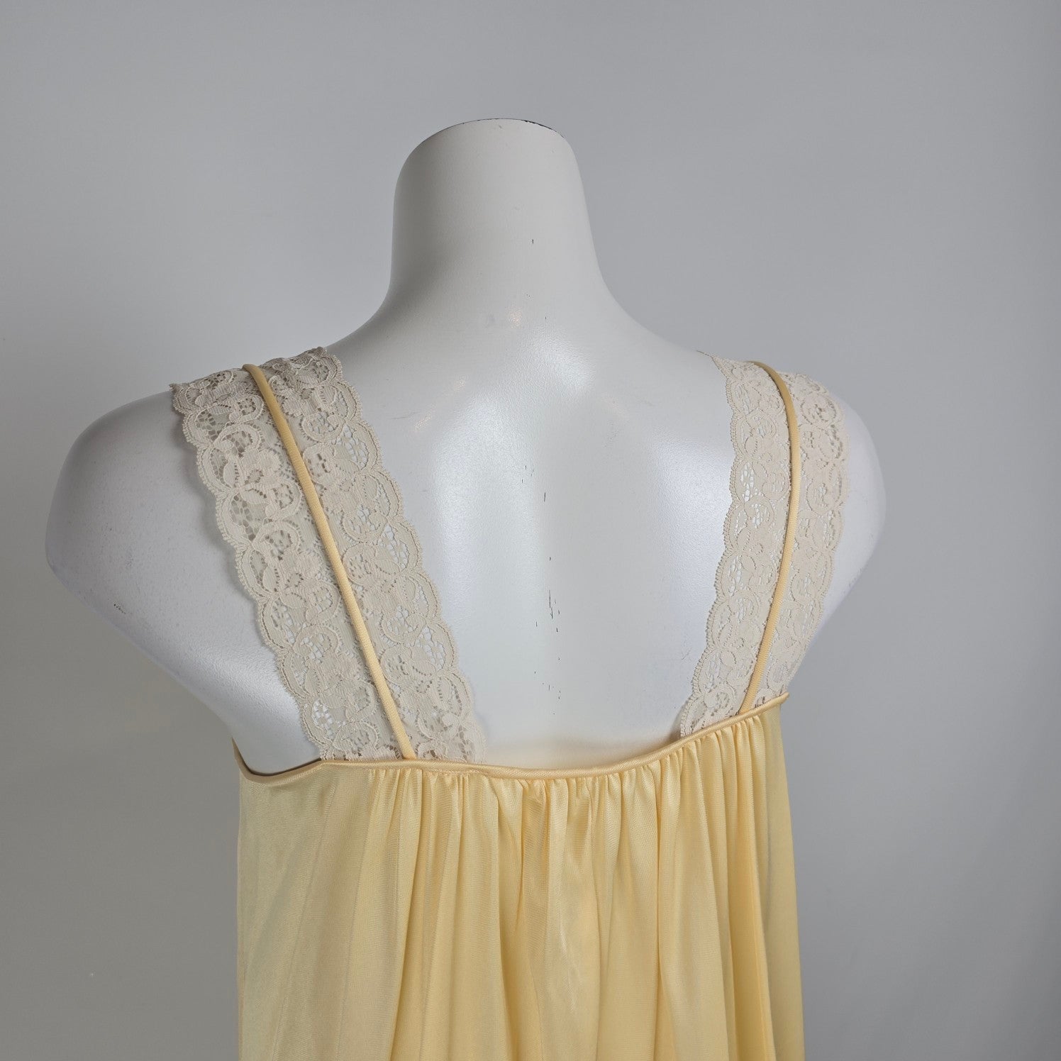 Vintage Yellow Lace Detail Long Lingerie Slip Dress Size M