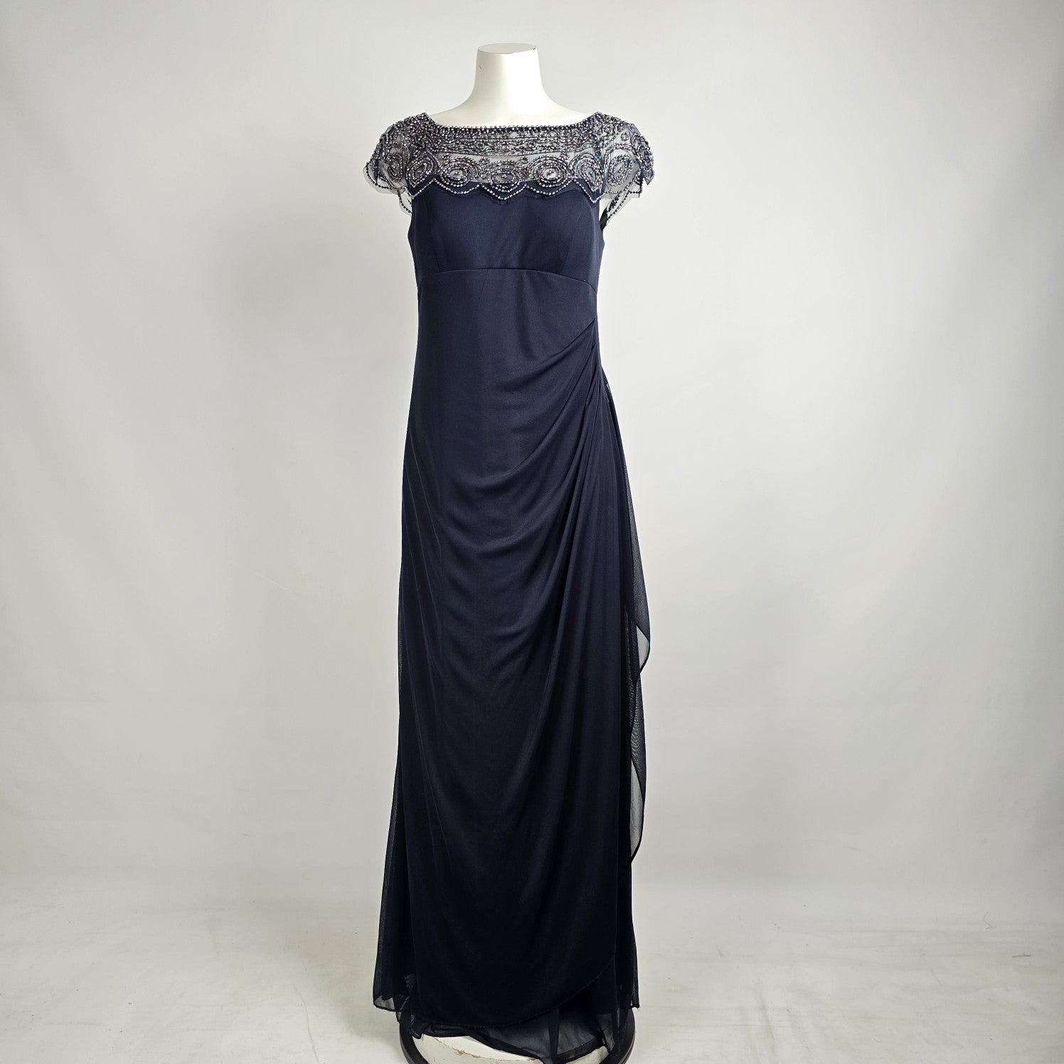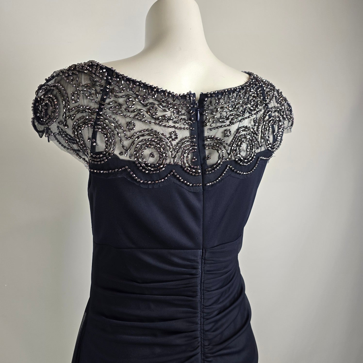 Xscape Navy Blue Beaded Neckline Event Gown Size 14