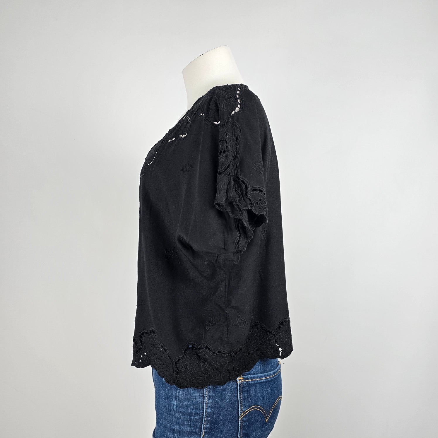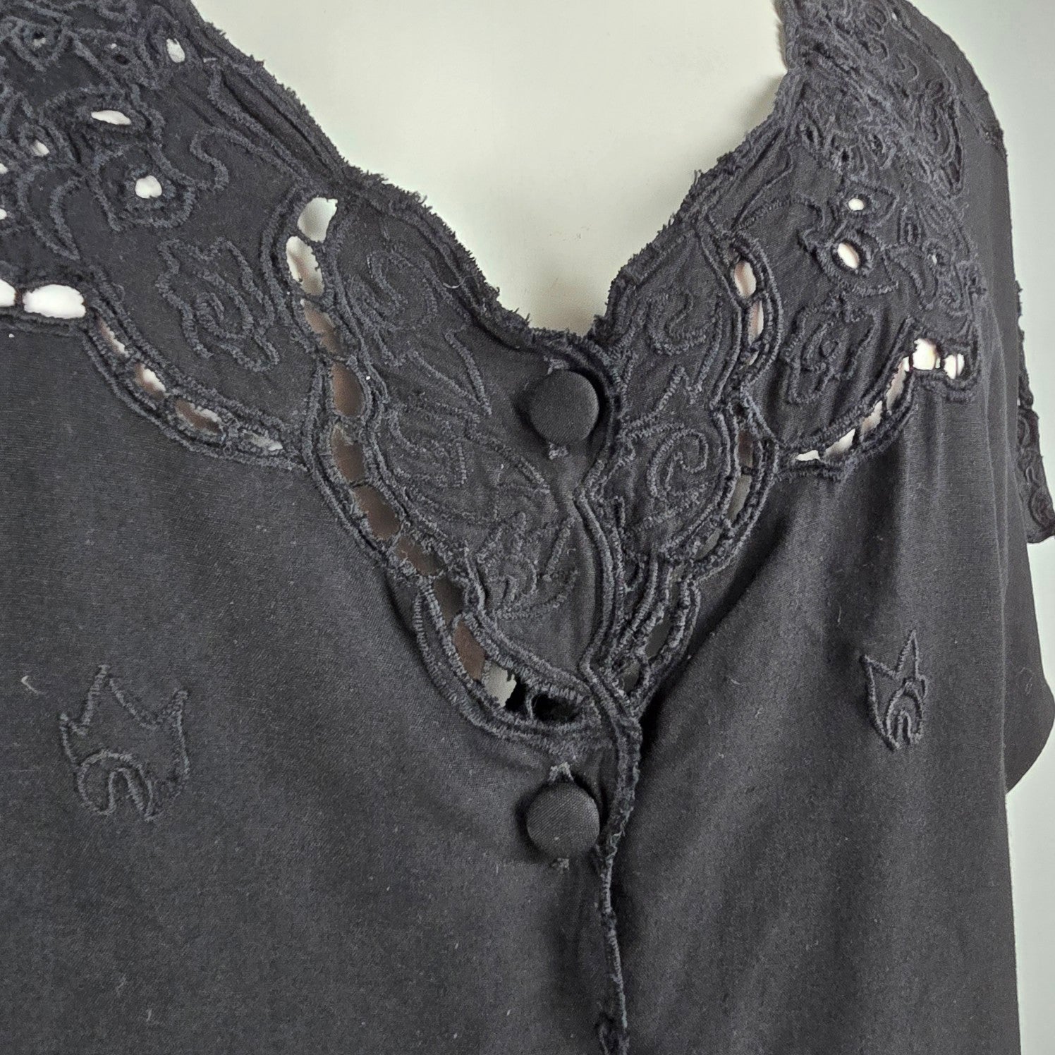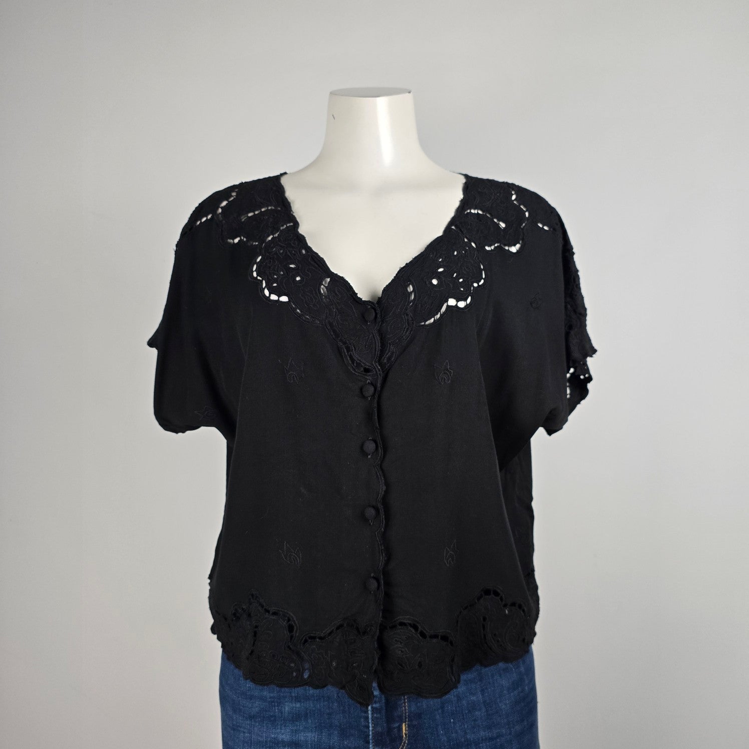 Yaya Black Lace Eyelet Detail Button Up Top Size L