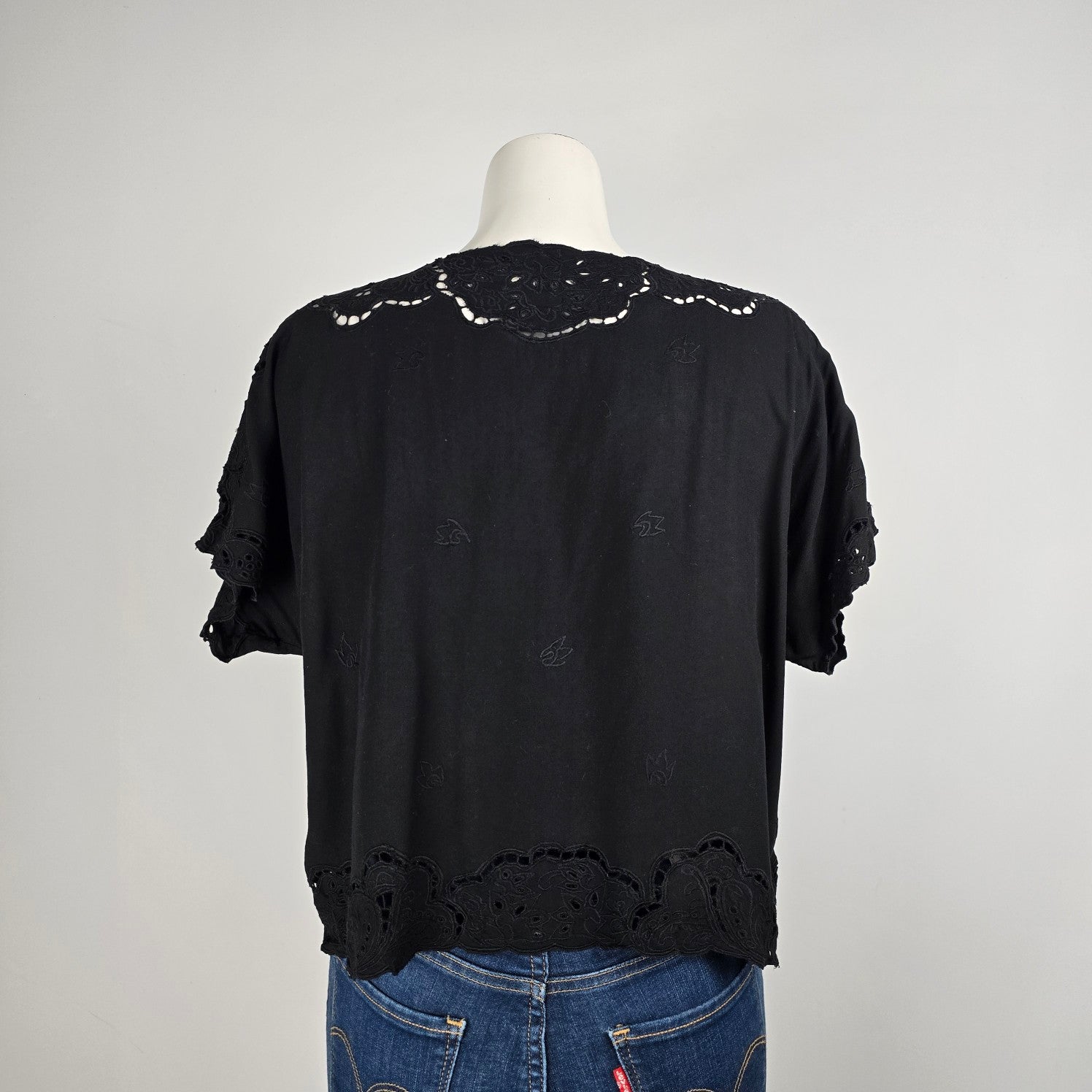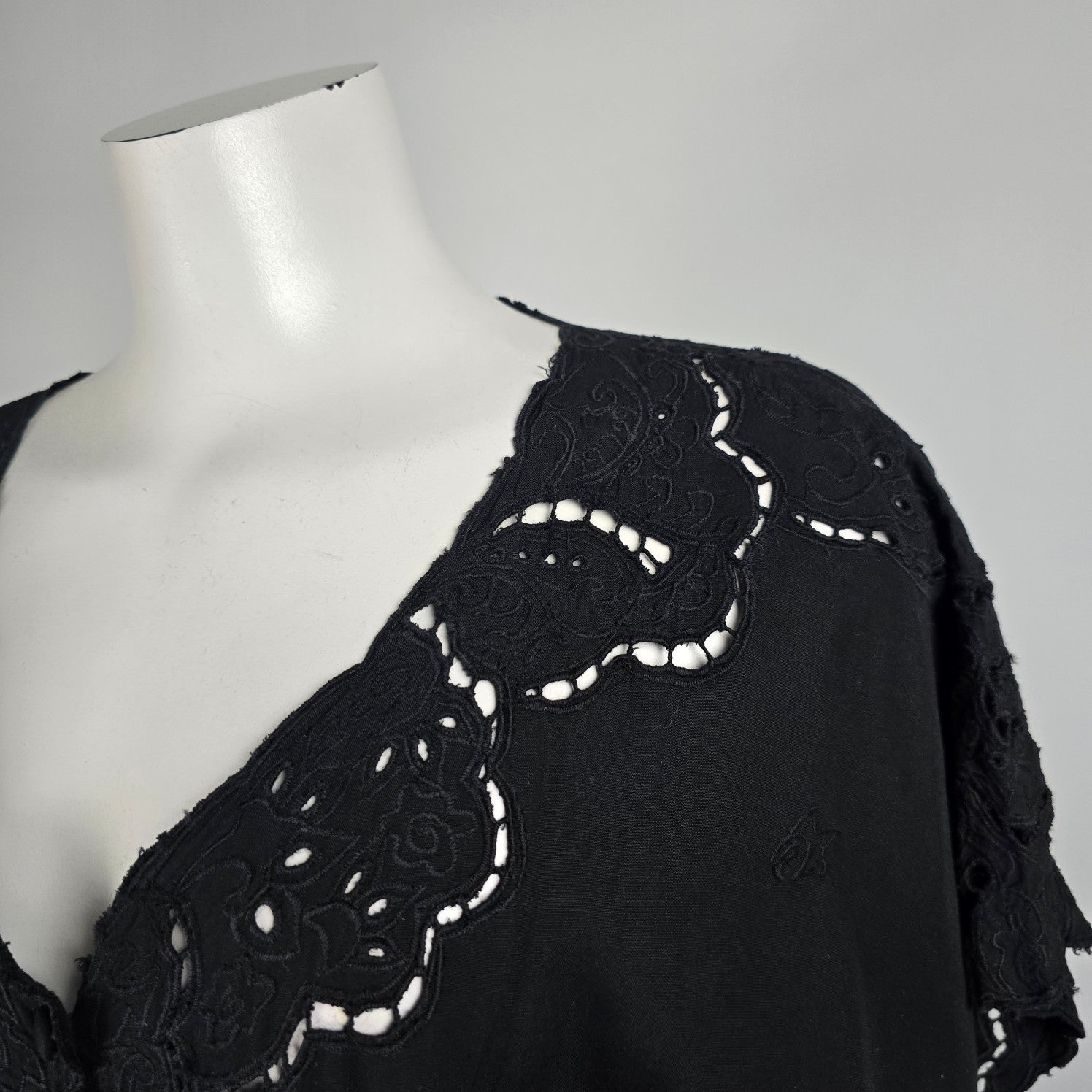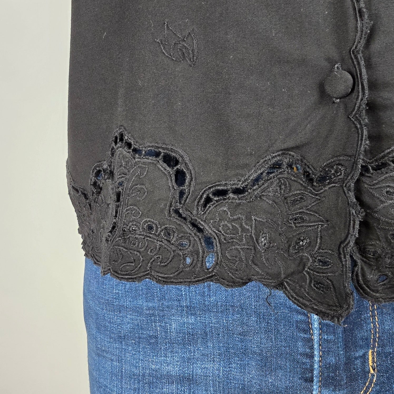 Yaya Black Lace Eyelet Detail Button Up Top Size L